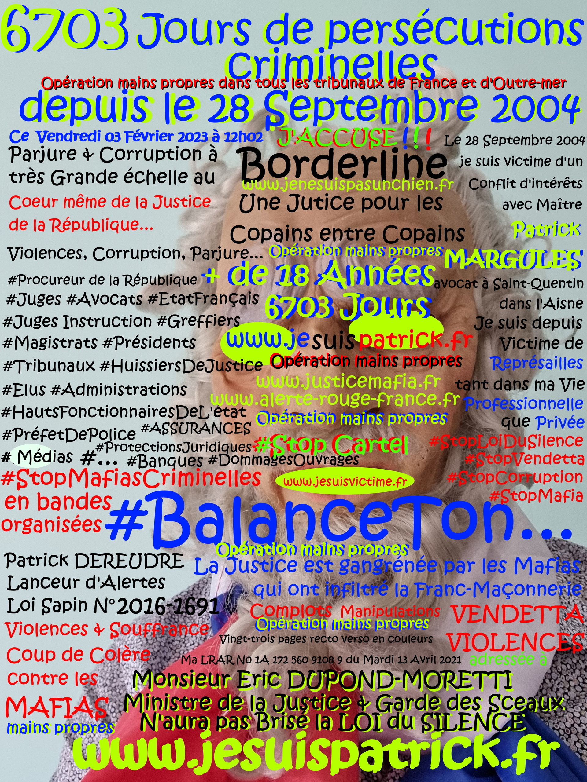 | JUSTICE MAFIA FRANCE STOP CORRUPTION STOP www.jesuispatrick.fr www.jesuisvictime.fr Patrick DEREUDRE - Site de maisonnonconforme ! |